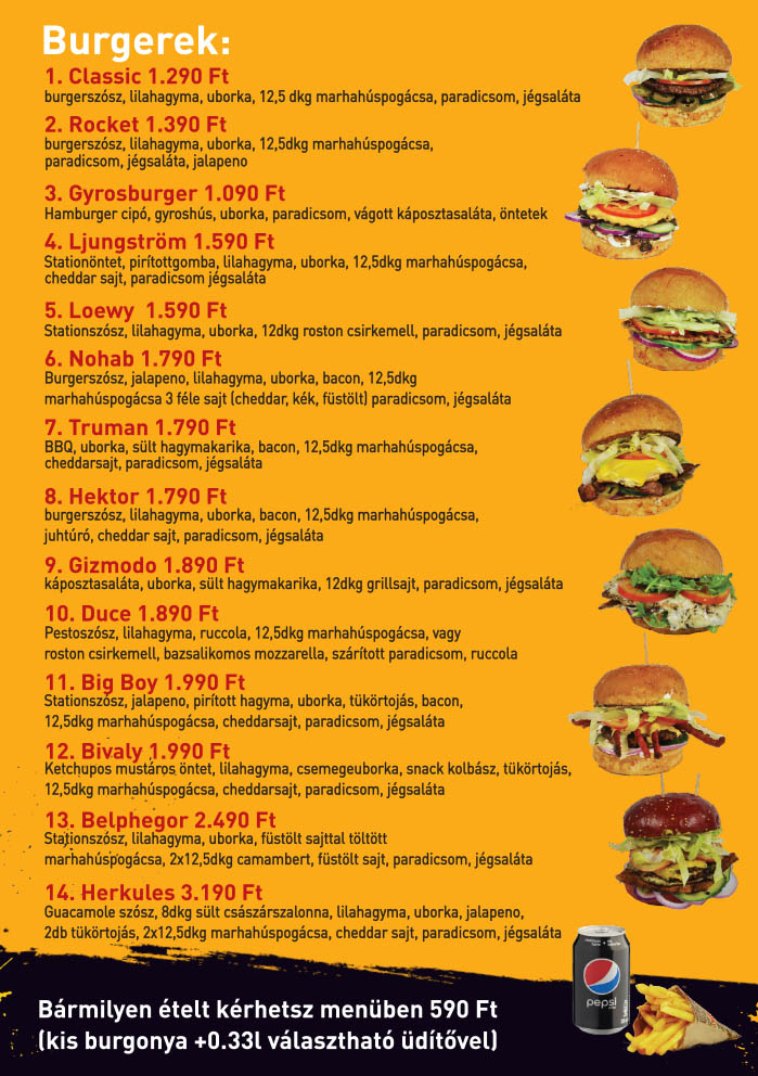 Ételeinket kérheti menüben is ! 0,33l Coca cola termék,és kis hasábburgonyával.